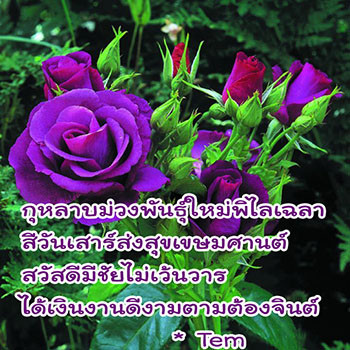 กุหลาบม่วงพันธุ์ใหม่พิไลเฉลา สีวันเสาร์ส่งสุขเขษมศานต์ สวัสดีมีชัยไม่เว้นวาร ได้เงินงานดีงามตามต้องจินต์