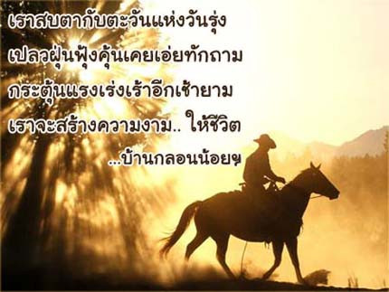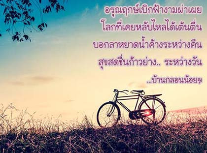 อรุณฤกษ์เบิกฟ้างามผ่าเผย โลกที่เคยหลับไหลได้เต้นตื่น บอกลาหยาดน้ำค้างระหว่างคืน สุขสดชื่นก้าวย่าง.. ระหว่างวัน ฯ